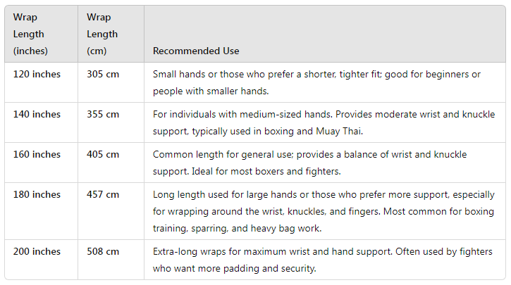 Hand Wrap Size Chart (By Length)How to Choose the Right Hand Wrap Length: